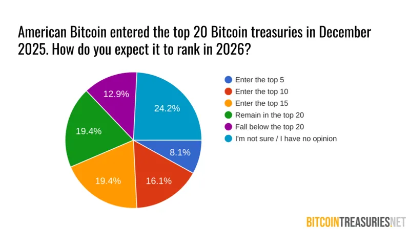 In December, Eric and Donald Trump Jr.’s American Bitcoin entered the top 20 treasuries measured by Bitcoin holdings. We asked respondents how it would rank at the end of 2026.