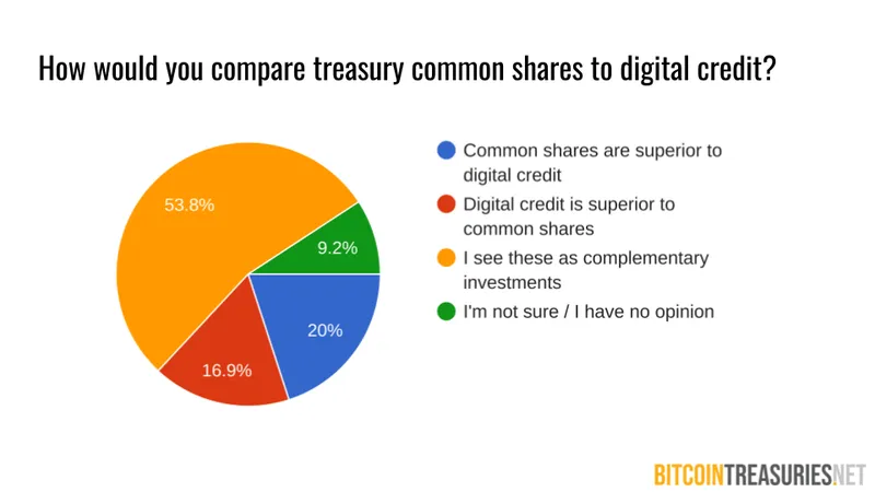 Respondents are very favorable toward high-dividend “digital credit”: more than half called digital credit a complementary investment to common shares of treasury companies.